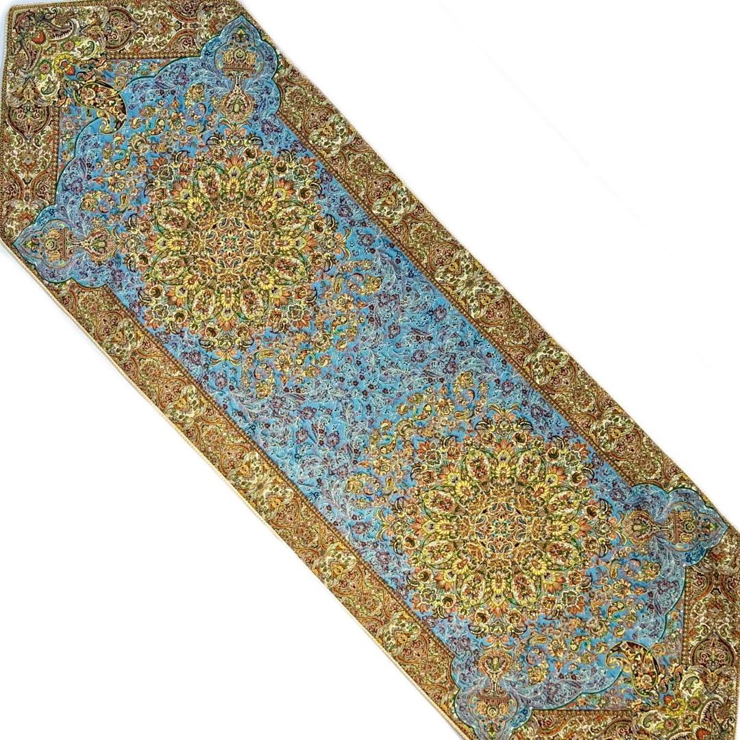 رومیزی ترمه 5تکه طرح ثمین آبی فیروزه